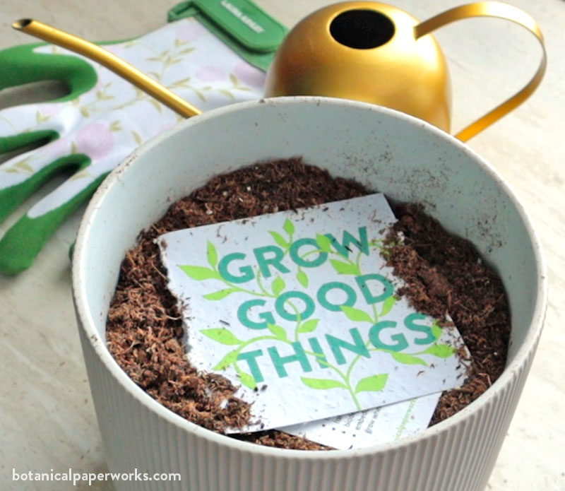 Seed paper is a special eco-friendly paper made from recycled paper waste embedded with wildflower, herb or vegetable seeds. When you plant this plantable cardstock in a pot of soil or outside in a garden, the seeds in the paper germinate and grow into plants.